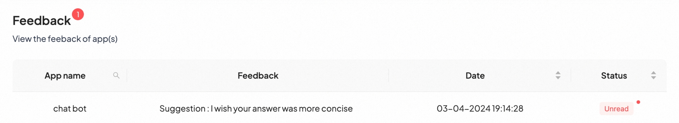 Application Name Created in Super.I, with support for search by application name, displaying user feedback data for the searched application