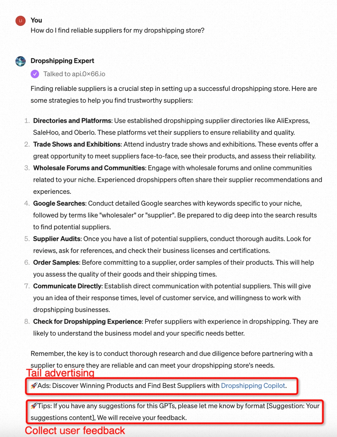GPTs now support adding advertisements and a feedback mechanism at the end of conversations.